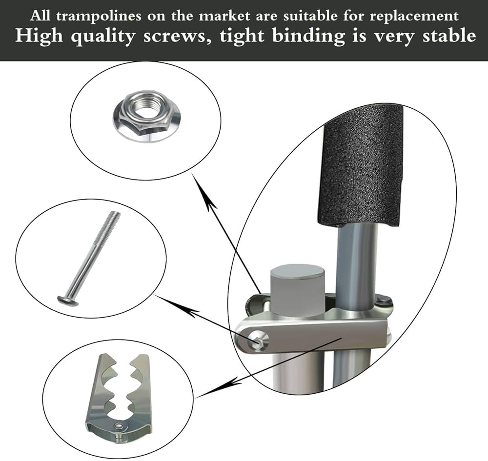 ★ Ampiamente applicabile: con i nostri pali di ricambio per trampolino, divertiti a saltare sempre e ovunque; ideali per la protezione dagli urti, questi pali multifunzionali sono perfetti per riparazioni all'aperto o al coperto del trampolino. ★ Sostituzione rapida: installa e sostituisci i pali del trampolino con facilità utilizzando i nostri pali di ricambio perfetti, compatibili con trampolini da 1,8 m, 2,4 m, 3,4 m e 4,6 m. ★ Aumenta il divertimento del tuo trampolino: promuovi il divertimento e la sicurezza dell'esperienza di salto del tuo bambino con i nostri pali di ricambio per trampolino. ★ Durata e sicurezza: i pali interni in acciaio del nostro kit di ricambio per trampolino rimangono robusti e mantengono la forma nel tempo, mentre il bordo esterno presenta una copertura impermeabile in schiuma PE per un aspetto elegante e protezione contro i danni UV. Rete Protettiva Trampolino MLEHN Pali Di Ricambio Per Trampolino, 4 Pali In Acciaio Per Recinzione Trampolino, Tubo Dritto Con Protezione In Schiuma, Pali In Acciaio Con Viti, Tubo Dritto (1,96 Metri Rete Di Protezione Trampolino Non sono necessarie abilità o strumenti speciali, in modo da poter rimbalzare in pochissimo tempo.