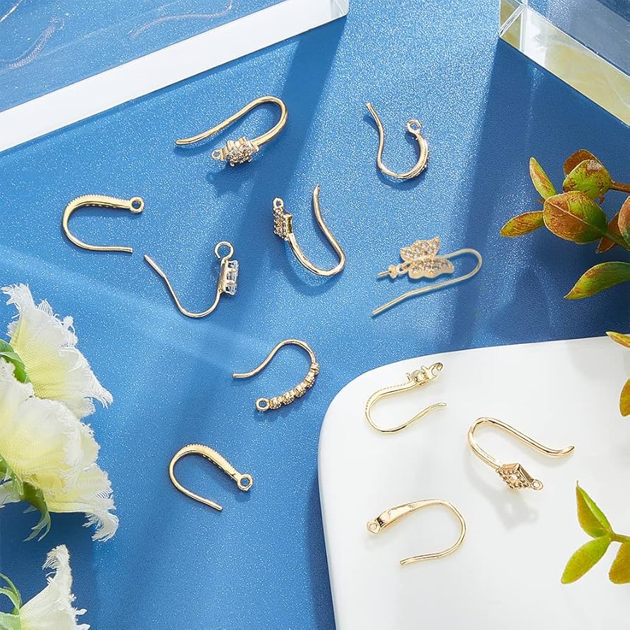 BENECREAT 32 PZ 4 Stili Ganci Per Orecchini In Ottone Placcato Oro Vero E Oro Bianco, Ganci Per Le Orecchie Curvi Con Anelli Orizzontali, Per Fare Gioielli, Creazioni,Ago :1mm