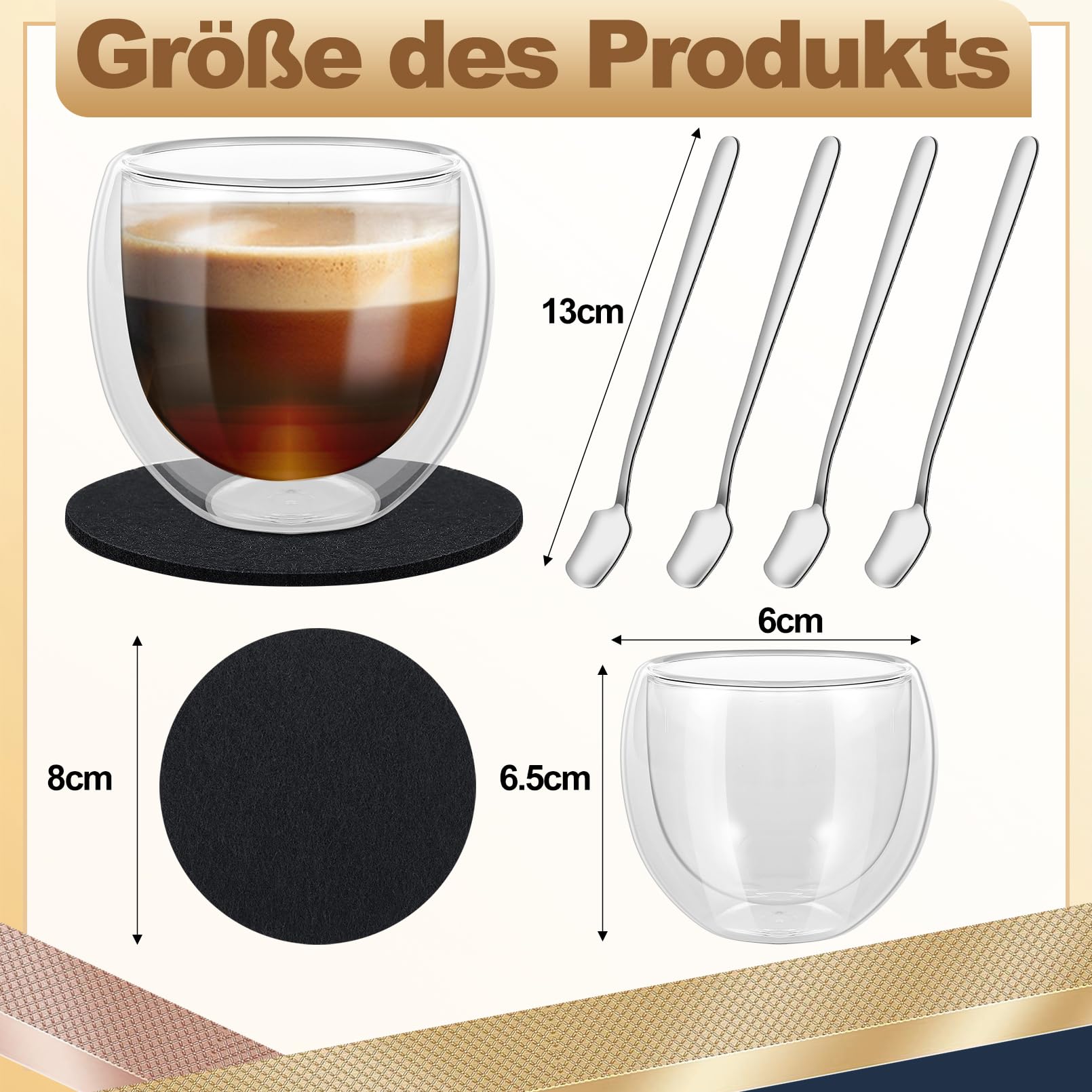 IZSUZEE Set Di 4 Tazze Da Caffè Da 80 Ml, A Doppia Parete, In Vetro