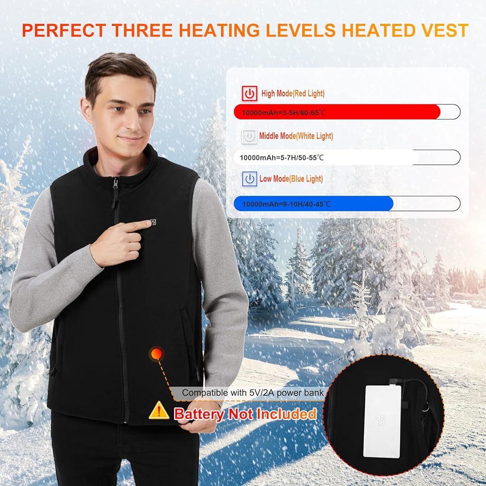 Peso del prodotto: 720 g / 25,4 once (compreso imballaggio) Le tasche con cerniera sul petto e sull'addome non solo aggiungono al design, ma forniscono anche spazio sicuro per gli oggetti personali, garantendo tranquillità durante gli spostamenti. Acquista Gilet riscaldato per donne e uomini, gilet riscaldato con 15 cuscinetti riscaldanti, ricaricabile tramite USB, gilet termico invernale per moto, pesca, passeggiate e lavoro all'aperto per Natale spedizione gratuita resi gratuiti su prodotti idone Questo design garantisce un calore a tutto tondo indipendentemente dalla posizione o dall'attività. Elegante design slim fit con pratiche tasche: caratterizzato da un elegante design aderente, questo gilet riscaldato da uomo mantiene il calore pur rimanendo leggero e flessibile. Parametri del prodotto: Nome del prodotto: Gilet riscaldante elettrico Compatibile con power bank, batteria non inclusa: questo scaldacorpo riscaldato non è dotato di una batteria integrata ma richiede una power bank da 5 V 2 A, offrendo agli utenti una maggiore flessibilità di scegliere la capacità appropriata in base alla durata del viaggio. La durata del tessuto garantisce che il gilet rimanga in ottime condizioni, usura dopo l'uso. Tessuto resistente alle pieghe, confortevole e traspirante: la nostra giacca riscaldata è realizzata in tessuto resistente alle pieghe di alta qualità che rimane liscio e croccante, anche dopo lunghe ore di utilizzo. Che si tratti di pendolarismo in una mattinata fredda o di praticare sport invernali all'aperto, questo gilet riscaldato si riscalda rapidamente per fornire comfort e calore in pochissimo tempo. Tre livelli di riscaldamento regolabili e riscaldamento rapido: il nostro gilet riscaldato è dotato di una tecnologia di riscaldamento avanzata, che consente agli utenti di selezionare la temperatura appropriata in base alle proprie esigenze e condizioni ambientali. Gilet Uomo Sportivo Tonfarb Gilet Riscaldato Uomo, Gilet Riscaldante Uomo Con 4 Zone Riscaldamento, 3 Livelli Temperatura, Elettrico Giubbotto Riscaldato Per Attività All'aperto, Pesca, Sci (Batteria Non Inclusa Gilet Riscaldato Moto La sua sartoria intelligente consente di indossarlo da solo o come capo a strati, offrendo più opzioni di stile. Inoltre, l'assenza di una batteria interna riduce il peso del gilet, migliorando il comfort generale. Uso del prodotto: tenere al caldo Rimani caldo e comodo con questo gilet riscaldato, progettato per il calore tutto il giorno. Il design leggero e traspirante garantisce comfort anche dopo attività intense. Ciò garantisce un calore continuo in qualsiasi ambiente. Dispone di tre impostazioni di temperatura regolabili: 50°C (luce rossa), 40°C (luce bianca) e 35°C (luce blu), che consentono di scegliere la temperatura perfetta.
