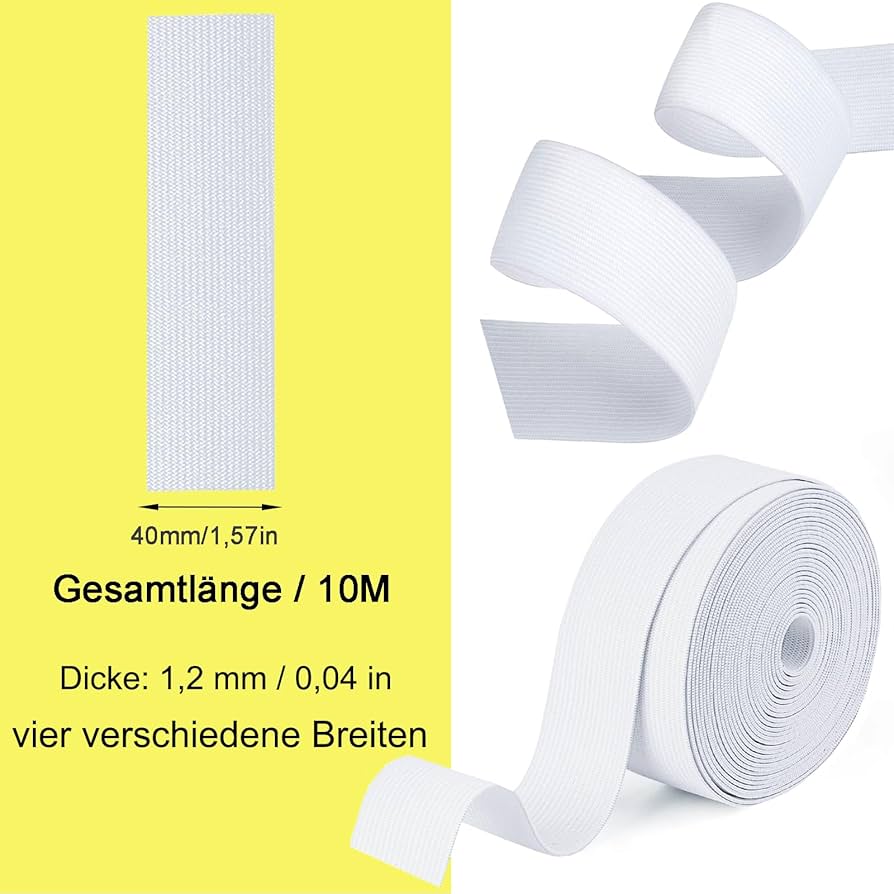 Sinzau 4 Elastici Elastici, 10 Mm, 20 Mm, 30 Mm, 40 Mm, Larghezza Per Pantaloni, Per Fai Da Te, Per Lavori Di Cucito, Bianco
