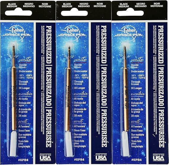 This item: Fisher SPR4 Refills for Bullet Fisher Space Pen , Black , 3 Pack Plus a free Black Clip! $31.32 $ 31 . 32 ($10.44/Count) Get it as soon as Tuesday, Mar 25 Refill PR4 Fisher # 400BCL / Classic Matte Black Bullet Pen With Space Pen Fisher Penna spaziale Ricarica nera Punta media x 3 pack