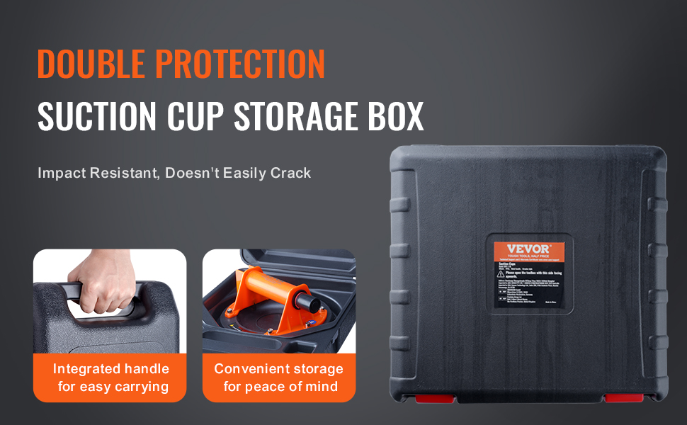 Facile da Usare: pronto, posizionato, riparato! A differenza della maggior parte delle ventose che mostrano una linea di indicazione di 2,5 mm, la nostra mostra 4 mm. Una volta terminato ed è il momento di rilasciare la ventosa del sollevatore per piastrelle, solleva semplicemente rapidamente il fermo e sei pronto per partire. Il manico della nostra ventosa, realizzato in acciaio, non è solo robusto. Scatola Portaoggetti in PP: questa ventosa per piastrelle è dotata di un'intelligente scatola portaoggetti in PP a doppio strato, resistente alle alte temperature e alla corrosione. Ciò significa che beneficerai di una sicurezza ottimale durante l'utilizzo. Inoltre, grazie al suo basso tasso di deformazione, aderisce perfettamente a varie superfici, anche sotto pressione. Ventosa di Grado Industriale: scopri la nostra ventosa avanzata per finestre a prova di perdite! È più facile da vedere e l'avviso è più chiaro. E grazie alla sua superiore resistenza alla corrosione, dura più a lungo in una varietà di ambienti. La nostra ventosa è realizzata in NBR, noto per la sua elevata resistenza alle intemperie. Carico Potente: i compiti più impegnativi non sono un problema con la nostra ventosa da 254 mm. Scopri una ventosa per vetro di alta qualità che si distingue. Progettato con una connessione senza soluzione di continuità, fornisce un'ottima tenuta all'aria per una maggiore potenza di aspirazione. Beneficiando del materiale NBR, funziona senza problem Questo design protegge la tua ventosa da urti, pressioni e sobbalzi esterni, amplificando così al massimo la protezione Ventose Per Vetro VEVOR 254 Mm Ventosa Per Vetro Portata 449 Kg Con Maniglia In Acciaio Pp Scatola Da Trasporto Ventosa Per Sollevamento Industriale Per Lastre Di Vetro Piastrelle Metallo Legno 80112692 Ventosa Per Piastrelle È progettato con un'esclusiva staffa stampata in un unico pezzo per combinare diversi componenti, garantendo una perfetta aderenza, migliorando le prestazioni di tenuta e prevenendo fastidiose perdite d'aria. È stato progettato per lunghe ore di lavoro, per consentire una buona manovrabilità, senza rischio di errore. Descrizione Prodotto VEVOR Ventosa per Piastrelle Grazie alla modanatura integrata, la nostra ventosa per finestre unisce diversi componenti senza soluzione di continuità.
