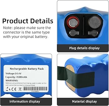 Irobot Roomba Battery Batería IRobot Roomba De 4500 MAh - Series 500, 600, 700, 800 Y 900 Irobot Battery For Roomba 500 【Specifiche】Tipo di batteria: Li-ion; Tensione:14.4V; Capacità:4500mAh; Durata della batteria: Tempi di ciclo: ≥500 cicli; Tempo di esecuzione: ≥60 minuti per carica. 【Perfetto post-vendita】Benvenuti a contattarci via email se avete problemi, domande o preoccupazioni, promettiamo di risolvere il problema entro 24 ore,siamo così sicuri delle prestazioni delle nostre batterie per portatili di ricambio, che uniamo una garanzia di 18 mesi con ogni singolo acquisto. Replacement for Roomba 900 Series:Roomba900, Roomba 960, Roomba 961, Roomba 964, Roomba 965,Roomba 966, Roomba 970, Roomba 980,Create 2, Scooba 450 Safe to Use 【Modelli di aspirapolvere compatibili】Fit for iRobot Roomba 500 600 700 800 900 Series Roomba 500 Series: Roomba 500, 510, 516, 520, 525,530, 531, 532, 535, 536, 540,545, 550, 552, 555, 560, 561, 562, 565, 564, 570, 580, 581, 585, 590, 595 Roomba 600 Series: 610, 620, 625, 630, 631,632, 635, 645, 650, 651, 654, 655, 660, 680, 681, 685, 690, 691, 694, 695, 696 Series,Create 2 Scooba 450 Robot Vacuum Cleaner Batteria.