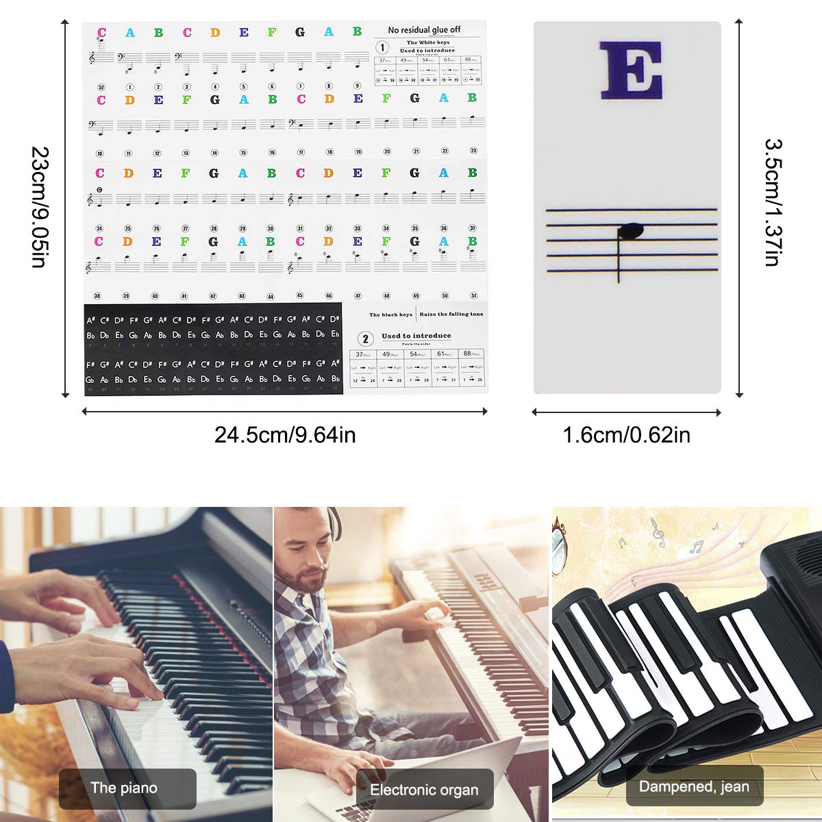 Adesivi Per Tastiera Pianoforte 37/49/54/61/88 Tasti, Tastiera E Note Musicali, Etichette Adesive Per Bianco E Nero, Trasparenti E Rimovibili Per
