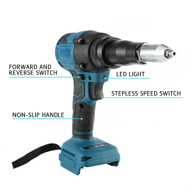 Ciò riduce il calore e consuma meno batteria. Il calore viene dissipato rapidamente, insieme ai numerosi fori di raffreddamento all'interno del case, portando a temperature operative più basse, maggiore efficienza e maggiore durata. È possibile sostituire gli adattatori in base alle proprie esigenze di lavoro. Il pacchetto include 3 adattatori: 3/16 pollici (4,8 mm), 5/32 pollici (4 mm) e 1/8 pollici (3,2 mm). [Ampiamente usato] Questo kit di rivetti automatici include anche 20 rivetti adatti alla maggior parte degli ambienti di lavoro, come riparazione e assemblaggio di veicoli, rivetti nella produzione industriale, rivetti in ristrutturazione, ecc. Inoltre, è dotata di una luce LED che si accende automaticamente durante il lavoro, illumina l'ambiente circostante e consente un utilizzo sicuro anche in ambienti con scarsa illuminazione. È compatibile con batterie Makita da 18 V, come BL1820, BL1830, BL1840, BL1850, BL1860, BL1820B, BL1830B, BL1840B, BL1850B, BL1860B, non compatibile con la serie G. È adatto per chiodi in alluminio e acciaio chiodi. Inserisci il rivetto, premi il grilletto una volta e finisci il rivetto. Rivettatrice A Batteria Ricaricabile Rivettatrice RIVIT RIV750 Professionale A Batteria 14,4V 1,3Ah Per Rivetti A Strappo Max D Rivettatrice Pneumatica