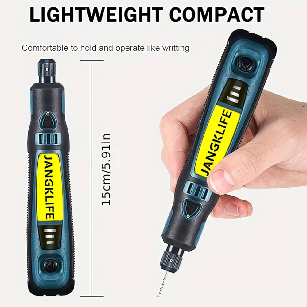 La comoda ricarica micro USB garantisce la ricarica ovunque e in qualsiasi momento. Elenco dei pacchetti: 1 penna per smerigliatrice elettrica 26 accessori 1 cavo USB 1 manuale di istruzioni Inoltre, la testa di molatura può essere sostituita secondo necessità, prolungando la durata dell'utensile [Multifunzionale]: questo kit di utensili rotanti senza fili non è adatto solo per la molatura, ma è anche ideale per la rimozione della ruggine, la Dremel Accessori Dremel Le 7760 4V Cordless Mini Smerigliatrice Elettrica Mill Machine Li-ion Rotary Tool Penna Per Incisione A Velocà Variabile Ricarica USB Smerigliatrice Angolare A Batteria Tutto ciò di cui hai bisogno è questo pratico strumento tutto in . Scopi multipli: ogni volta che stai pensando di incidere, affilare, levigare, lucidare o levigare, troverai questo utensile rotante elettrico must. Compatto e leggero: potente ma piccolo e leggero, proprio come tenere una penna durante l'uso, per il massimo controllo e precisione oltre che per il massimo comfort. 3 impostazioni di velocità: l'utensile rotante senza fili a velocità variabile può essere regolato su 3 diverse velocità a 5000, 10000 o 15000 giri/min per soddisfare le diverse esigenze. Specifica: Tipo di articolo: penna smerigliatrice elettrica Materiale: ABS Batteria: 1 batteria agli ioni di litio da 3,6 V 650 mAh (fornita con batteria integrata) Velocità di rotazione: 5000 o 10000 o 15000 giri/min Interfaccia di ricarica: Micro USB (DC5V) Modalità d'uso: Estrarre il prodotto e installarlo prima utilizzare.