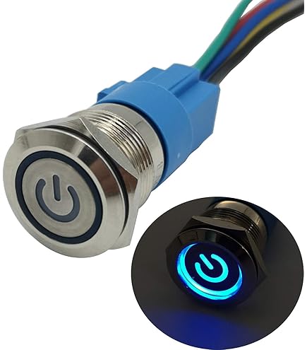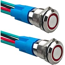 Interruttore a pulsante, 19mm 12V LED Interruttore a pulsanteautobloccante in acciaio inossidabile impermeabile (Blu) [Montaggio] L'interruttore autobloccante adotta un anello in gomma e un dado esagonale fissi, rendendolo antipolvere e impermeabile, che Abbiamo sempre a cuore l'esperienza del cliente e ci sforziamo di migliorare le caratteristiche e i dettagli del prodotto. ▶Questo è un interruttore a pulsante autobloccante. Specificazioni: ●Materiale: Acciaio Inossidabile + Ottone + Plastica ●Dimensione: Diametro Filettatura (Foro di Montaggio): 19 mm Diametro Testa: 22 mm Lunghezza Interruttore: 35 mm Lunghezza Precablata: 150 mm ●Peso: 25 g ●Colore: Colore Interruttore: Argento + Blu Colore LED: Blu ●Confezione Include: LED Interruttore a Pulsante X 2 Pezzi Presa Precablata X 2 Pezzi Anello di Gomma Impermeabile X 2 Pezzi Parametri del Prodotto Tipo di Operazione: Tipo Autobloccante Combinazione Interruttore: 1 NC, 1 NO, 1C Corrente Nominale: 5A Tensione Nominale: 12V / 24V Resistenza di Contatto: 50mΩ Resistenza di Isolamento: 1000mΩ Grado di Protezione: IP67 Tipo di Terminale: 5 pin, con presa precablata Temperatura di funzionamento: -20℃~55℃ ▶Questo interruttore a pulsante è la scelta migliore per campanelli, miglioramenti di auto e moto, clacson, interruttori di avvio automatico e altre applicazioni che richiedono una corrente di attivazione temporanea. ▶100% Soddisfazione Garantita! Da Esterno Odulo Interruttore Autobloccante, 5/12 V / 24V Interruttore Pulsante Campanello La luce LED può essere sempre accesa o solo quando il dispositivo è in funzione, a seconda di come si collegano i fili.