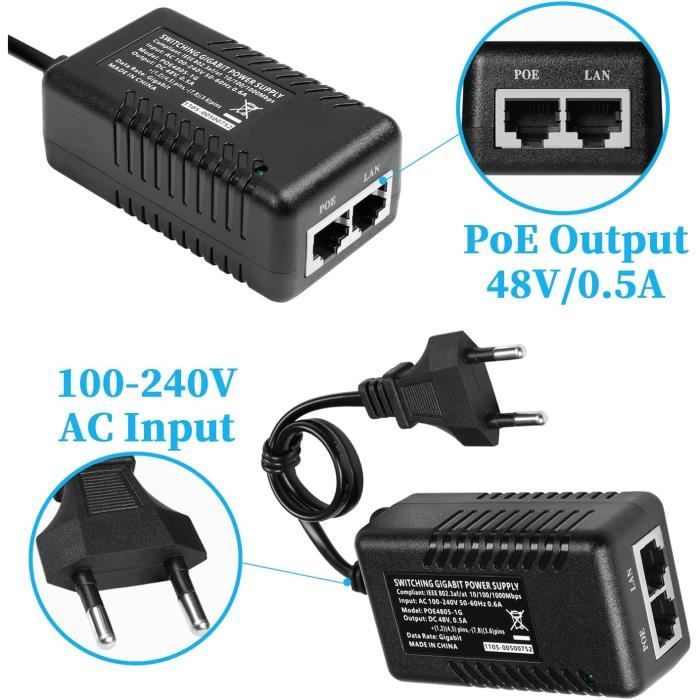 YAODHAOD POE - Adattatore Iniettore 48 V/0,5 A, 100/1000 Mbps, Spina Europea, Distanze Fino A 100 M, Plug And Play Per Adattatore Ethernet, Telefono E Fotocamera IP (100 M