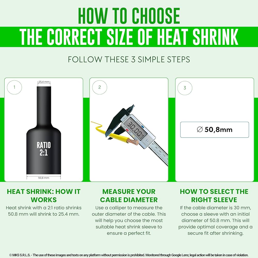 RIPARA/RINFORZA CAVO Cavi come nuovi: rinforza e protegge, estendendo la vita del tuo dispositivo con guaine resistenti. 4️⃣ Lascia raffreddare per assicurare una sigillatura efficace e duratura. È ideale per l'isolamento, la protezione e la riparazione di cavi e fili. CAMPI DI UTILIZZO GUAINA TERMORESTRINGENTE La nostra missione è offrire soluzioni rapide e affidabili per le tue esigenze tecniche. Guaina Termorestringente 3M 12.7mm, Col. Nero, Restringimento 2:1, L. 6m. Recensioni: 5/5. (32 IN OFFICINA Guaina anti-usura: protegge i cavi da vibrazioni, sollecitazioni meccaniche e cortocircuiti. 3️⃣ Distribuisci calore uniformemente a 70°C sulla guaina. È perfetta per isolare e proteggere cavi elettrici, avvolgendo saldamente gli oggetti, anche in ambienti umidi e all'aperto. Sezioni disponibili: 32mm Ø, 38,1mm Ø, 50,8mm Ø, 76,2mm Ø, 101,6mm Ø | Lunghezza della bobina da 2 fino a 3 metri con tolleranza ±5%. 💧✅ IMPERMEABILITÀ E PROTEZIONE: fornisce un'eccellente protezione contro umidità, polvere e corrosione una volta riscaldata e ristretta attorno al cavo. GRIP ANTISCIVOLO Ottimo per impugnature di attrezzi, manubri di bici e altro, per una tenuta ferma e sicura. 📋🛡️ CERTIFICAZIONI E RESISTENZA: Conforme agli standard UL 224 125°C VW-1 600 V | Range di temperature operative da -55 °C a +125 °C. 2️⃣ Inserisci il cavo all'interno della guaina. Questo compenserà l'accorciamento che avviene durante il processo di riscaldamento. 1 KIT MINIBOX ESPOSITORE 2 SMALLSIZE TERMOKIT 3 BIGSIZE TERMOKIT 4 MOSTSOLD TERMOKIT Come si usa la guaina termorestringente? 1. Tagliare la guaina alla lunghezza desiderata. 2. Posizionarla sopra l'area del cavo che si desidera coprire. 3. Riscaldare uniformemente la guaina con una pistola termica fino a quando non si è completamente ristretta e aderente al cavo. Con l'acquisto dei Kit SmallSize e BigSize coprirai tutta la gamma di guaine termorestringenti, ottenendo combinazioni convenienti e risparmi significativi rispetto all'acquisto delle singole Minibox. 📩 Per supporto, non esitare a contattarci: il nostro team di tecnici è a tua disposizione per offrirti la migliore soluzione nel minor tempo possibile. 🔥 Temperatura per il restringimento: 65°C 🔒 La resistenza alla trazione è in linea con la norma ISO 37, raggiungendo 6,00 kg/mm² di forza. Puoi utilizzare un phon per uso domestico (processo che richiederà più tempo), oppure una pistola termica industriale. Guaina Termica Leroy Merlin Guaina Termorestringente Ø 9.5 Mm Trasparente | Leroy Merlin Guaina Termorestringente 25 Mq