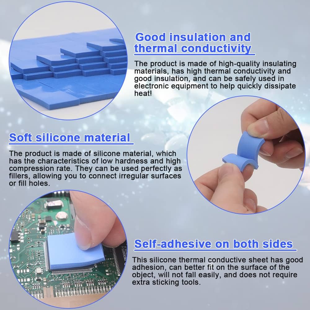 ★ 【Sicuro e affidabile】 La dimensione del cuscinetto termico è di 100 x 100 x 1 mm, che viene tagliato in 100 pezzi da 10 x 10 x 1 mm. ★ 【Facile installazione】 Il cuscinetto in silicone termoconduttivo può essere tagliato nella dimensione appropriata secondo necessità. Se è necessario rafforzare la viscosità pad termico, è possibile aumentare l'adesivo in base alle proprie esigenze. Il cuscinetto termico può soddisfare i requisiti di conducibilità termica della maggior parte dei prodotti elettronici e migliorare l'efficienza complessiva di dissipazione del calore. Thermal Pad può essere utilizzato per schede grafiche di computer, macchine automobilistiche, computer notebook, DVD, VCD, LID, set-top box, CD-ROM, processori, moduli IGPT e tutti i dispositivi di dissipazione del calore necessari. Pulire prima il dispositivo, poi strappare la pellicola protettiva su un lato del cuscinetto termico, attaccare il cuscinetto di conducibilità termica sulla parte superiore del dissipatore di calore, premere leggermente sopra per stabilizzare il cuscinetto termico, quindi strappare la pellicola protettiva sull'altro lato. GIRAFEDA Confezione da 2 cuscinetti termici conduttivi ★ 【Materiale in silicone morbido】 Il cuscinetto termico è realizzato in silicone che ha le caratteristiche di una conducibilità termica stabile, isolamento, morbidezza ed elasticità. Il cuscinetto in silicone termoconduttivo può essere posizionato tra l'elemento riscaldante e il radiatore per trasferire efficacemente il calore del componente riscaldante al radiatore per ottenere l'effetto di conduzione del calore e isolamento. Pad Termico Migliore 5 Pezzi 100x100x1,5 Mm 1,5 W/m-k Conduttività Termica In Silicone Pad Pasta Termica