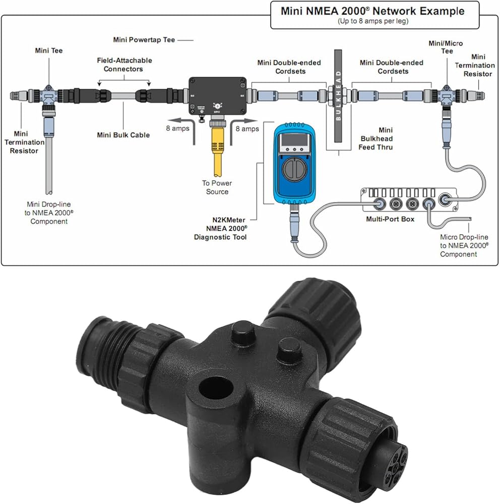 For NMEA 2000 N2K Backbone Cable 5 Pin 3 Meter/9.8ft Long IP67 Waterproof For Simrad Networks **Compatibilità versatile---**Questo connettore NMEA 2000 si adatta perfettamente alle reti Simrad, B&N e Navico, garantendo un'ampia compatibilità e una facile integrazione nella configurazione **Robusta qualità costruttiva---**Realizzato in ABS e metallo di alta qualità, il nostro connettore offre un'eccezionale resistenza all'olio e all'acqua di mare per una maggiore durata e longevità in condizioni marine difficili. M12 T Connector is fit for NMEA 2000 Networks, Lowrance Networks, Simrad Networks, B and G Networks, Navico Networks, for Garmin Networks. General Information Item type **Espansione efficiente---**Collega facilmente display, sensori o dispositivi essenziali aggiuntivi al cavo backbone NMEA 2000 (N2K), creando un ambiente robusto ed espandibile sulla tua imbarcazione.