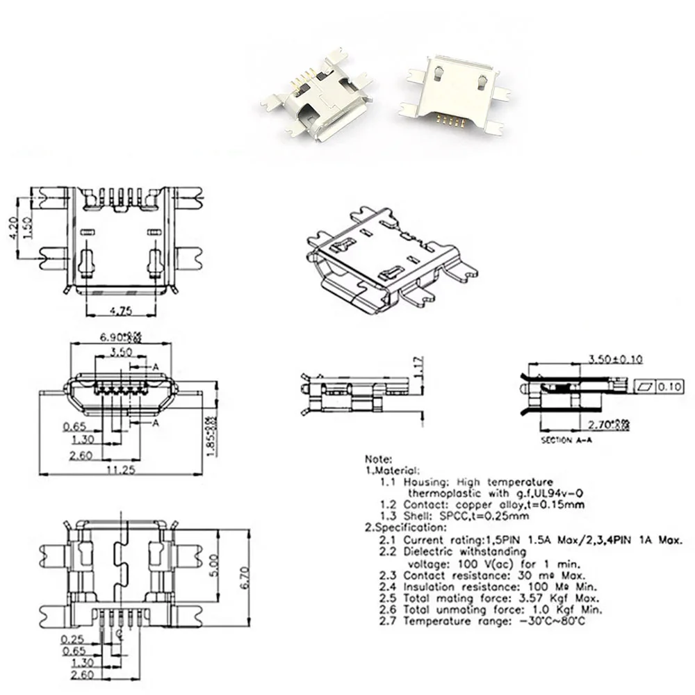 BELTI 10 Pezzi Micro USB Tipo B 5 Pin Femmina Presa Connettore SMD 4 Gambe 90 Gradi