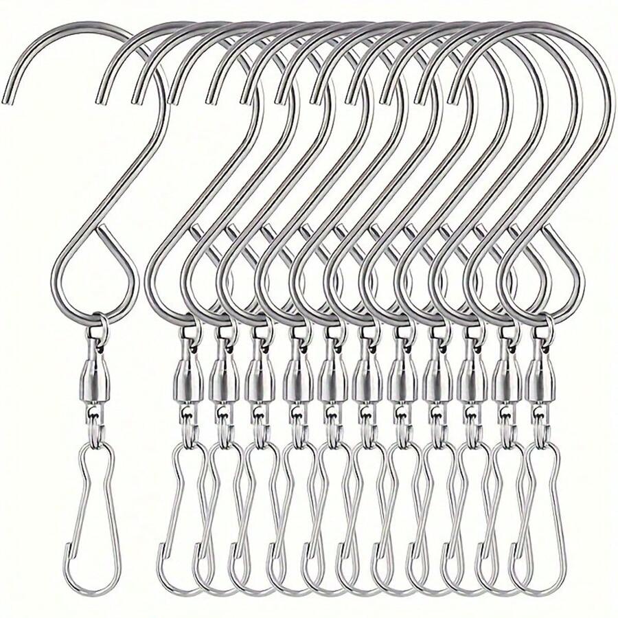 Gancio Girevole 5 Pz 360 Gradi Ganci Girevoli Clip Per Vento Spinner Mangiatoia Gancio Rotante Per Appendere Materiale di Alta Qualità: Gancio girevole a 360° a parete è realizzato in acciaio inossidabile di alta qualità, con elevata durezza, resistente all'usura, non facile da danneggiare e deformare, può essere tenuto saldamente senza scivolare ed è più sicuro da usare Quantità Sufficiente: Puoi ricevere 15 clip a gancio rotante semplici e pratici, sufficienti per soddisfare le tue esigenze, puoi anche aggiungere catene per soddisfare esigenze diverse Nome del prodotto · gancio girevole per filatore del vento ; Materiale · acciaio inossidabile ; Colore · nero, argento (opzionale) ; Dimensioni · 3.14x1.1 pollici/8x2 Design Rotante a 360°: Appeso in acciaio inox ganci girevoli clip è composto da due ganci a forma di S collegati tramite un'interfaccia rotante, che può ruotare di 360°, consentendo ai tuoi oggetti di ruotare con il vento, mostrando I tuoi oggetti squisiti, non facili da aggrovigliarsi e risparmiando energia