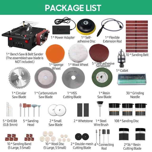 Alta efficienza: con un motore in rame puro da 750 W e una velocità regolabile in modo continuo (800-10000rpm) tramite la manopola di controllo, questo prodotto ha un'elevata efficienza per soddisfare le vostre esigenze di taglio, levigatura, intagliatura, punzonatura e lucidatura. Alta stabilità: la base in alluminio con piedini in gomma antiscivolo può alleviare efficacemente le vibrazioni ed evitare di graffiare il piano di lavoro. Si prega di stringere la pinza o il mandrino. 5. Si prega di non utilizzare pressioni laterali eccessive, che possono tendere a piegare o rompere il fusto o il pergolato o un accessorio. Lascia che la velocità degli accessori faccia il lavoro. 6. Si prega di non installare il motore bloccando la ruota di lucidatura, la lucidatrice, la ruota o altri accessori o utilizzando una pressione eccessiva. E prestare particolare attenzione alle istruzioni di sicurezza in dotazione. 9. Si prega di consentire una leggera differenza di colore a causa della luce di tiro e di 1-3 cm di errore a causa della misurazione manuale e assicurarsi che non ti dispiaccia prima di ordinare. Materiale: Alluminio, rame, nylon, acciaio, gomma. Dimensioni del tavolo (L*W): 26,5 x 22 cm. Descrizione Se ti piace fare gioielli e ti piacciono le pietre levigate, un anello può essere uno strumento molto flessibile e versatile. È adatto anche per la lucidatura manuale, levigatura e taglio di perline, bodhi e vari materiali fai da te. Specifiche: Potenza: 750 W. Tensione: 220 V. Velocità: 800-10000 rpm. Dimensioni lama: 15 cm. Tutti gli accessori per il montaggio. Osservazioni. 1. Si prega di notare che questo strumento deve essere messo a terra durante l'uso. 2. Si prega di indossare sempre dispositivi di protezione adeguati per occhi e viso come occhiali di sicurezza e visiere (non inclusi). Questo può causare danni al motore. 7. Si prega di non utilizzare il vostro utensile elettrico durante una notevole diminuzione della potenza. Levigatrice da tavolo 5 in 1: viene fornita con una lama per sega di giada, una lama per la lavorazione del legno, una ruota in fibra, un albero flessibile, un manico da intaglio, un mandrino per trapano e altri accessori, questa levigatrice da tavolo consente di lucidare, tagliare, lucidare, levigare e intagliare. Si prega di non indossare abiti larghi o gioielli. Durevole e resistente: i materiali in alluminio, nylon e acciaio di alta qualità e i processi di iniezione plastica conferiscono a questo prodotto un'elevata stabilità, durata, alta resistenza e resistenza all'usura, insieme al motore in rame puro e ai cuscinetti a lunga trazione, che gli conferiscono buone prestazioni per lungo tempo. Ti aiuta a eseguire lavori di lucidatura e taglio più velocemente e meglio grazie alla velocità variabile, ai motori ad alte prestazioni e a una varietà di accessori, rendendolo un ottimo aiuto per te! Cavo di alimentazione lungo: il cavo di alimentazione di circa 4,92 piedi consente di avere molte lunghezze usa e getta, riducendo il limite durante l'uso. Sega Circolare Mini Sega Da Tavolo 750 W, 800-10000 Rpm, 5 In 1 Con 2 Lame, Profondità Di Taglio 0-10 Mm, Sega Multifunzione Per Progetti Fai Da Te Seghetto Alternativo A Batteria Lunghezza del cavo di alimentazione: circa 1,5 m. Dimensioni della confezione: 36 x 29 x 23 cm. Utilizzo: È adatto per intagliare, lucidare e forare giada, agata, metallo, legno, ecc. Trattamento superficiale: spruzzatura di plastica Morsetto flessibile dell'albero: 4 mm. Gamma mandrino: 1,5 – 10 mm. Dettagli: Pratico cestino: può essere installato sotto la lama della sega da taglio, che può aiutarti a raccogliere i rifiuti tagliati e lo sporco e mantenere pulita la tua scrivania.