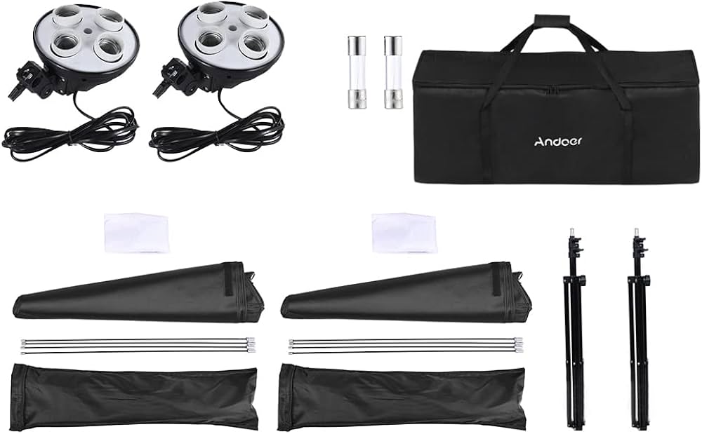 Andoer Set Di Illuminazione Softbox – 2 X 50 X 70 Cm Con 2 X 4 In 1, 2 X Treppiedi Luce Da 2 M, Borsa Per Il Trasporto Per Studio Ritratto