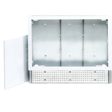 Telaio/cornice e coperchio telescopici. Con servocomandi installati su valvole termostatizzabili prevedere viti di fissaggio coperchio prolungate cod. 2155.005. Esecuzione con guide mobili per il libero posizionamento dei componenti all'interno della cass Cassetta Per Collettori (dimensioni 500 X 800 X 110–150) Max 7 Derivazioni Misure In Cm: 47 X 32,5