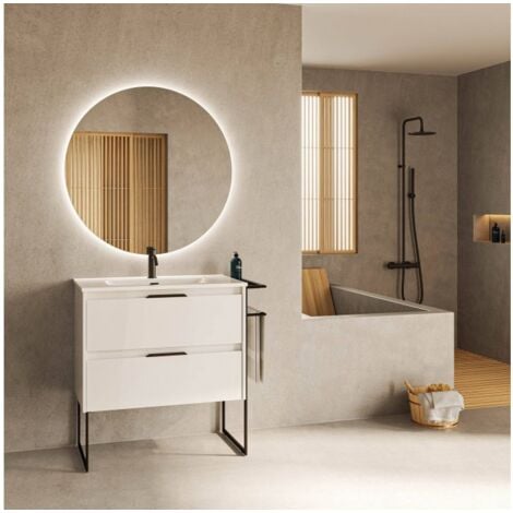 MOBILE BAGNO A TERRA 56,5 CM CON LAVABO E SPECCHIO BIANCO | EASY | Leroy Merlin