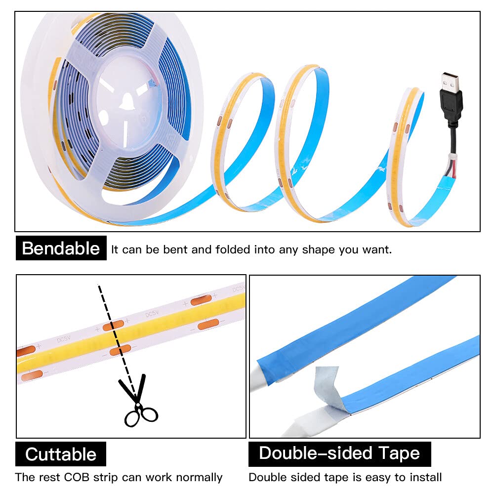 IN STOCK: Striscia LED COB flessibile ad alta densità con interruttore touch, USB 5V , 320 LED , luce lineare dimmerabile, nastro LED con adesivo per la decorazione domestica (1m),, MW-CE-0016755 al miglior prezzo. Consegna rapida in tutta Italia Adatto per decorazioni di controluce domestica o commerciale Protezione ambientale verde, nessun inquinamento Tempo di spedizione: Normalmente consegnato entro 5-12 giorni dopo il pagamento è completato. Alta affidabilità, nessuna luce morta, nessuna placca. Led Tv Usb Striscia Led USB 5V Retroilluminazione Per TV 5W SMD 5050 5 Metri IP44 Rgb Wisdom Striscia Led 3 Metri Alto indice di resa cromatica (CRI>85Ra), 320 LED/m, alta efficienza luminosa