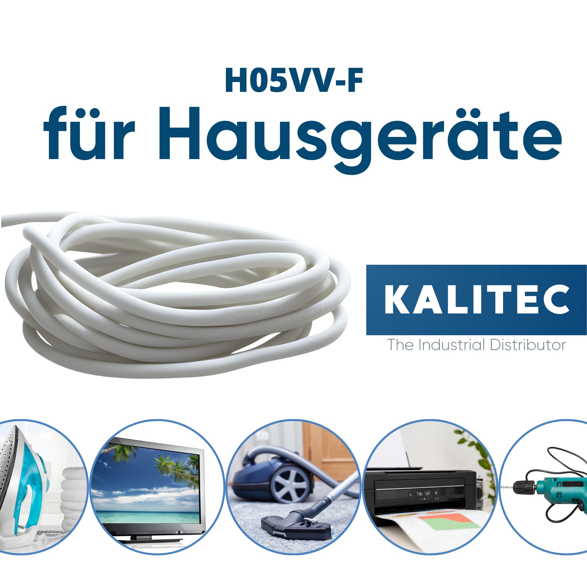 Kalitec H05VV-F - Tubo Flessibile Da 10 Metri, 5 X 1,5 Mm², 5 G1,5 Mm2, Con Conduttore Di Protezione, Cavo In PVC Per Interni, Cavo Elettrico Bianco, Cavo Per Lampada, Flessibile, 5