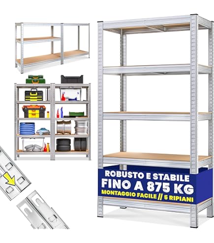 RIPIANI REGOLABILI - I ripiani angolari con spessore del materiale superiore alla media possono essere installati a distanza di 13 cm. SCAFFALE METALLO ANGOLARE per carichi pesanti - La nostre scaffalatura metallica bianco shelfplaza come scaffali garage con 6 ripiani HDF assicura un sistema di ordine. IN STOCK: shelfplaza® HOME 200x70x45 cm Scaffale angolare metallo carichi pesanti bianco 6 ripiani / Scaffale metallo 145kg capacità carico / Mensola scaffale angolare / Scaffali in metallo per garage, 4320450716C al miglior prezzo. Consegna rapida in tut Scaffalature Angolari Bianche Monzana® Scaffale Metallo Angolare Garage 180x70x40 875kg 5 Riapiani Scaffali Cantina Scaffalatura Angolare Scaffale Salvaspazio Mobile Metallo : Amazon.it: Fai Da Te Scaffali Angolari Per Interni STABILE QUALITÀ - La capacità di carico della scaffalatura per carichi pesanti è di 145kg per ripiano. PER CREARE PIÙ SPAZIO - Utilizzabili anche come scafali angolari per la cantina, per la dispensa o per il ripostiglio, gli mensola angolare shelfplaza sono adatti ovunque. Crea i tuoi spazi! (200 cm altezza x 70 cm larghezza x 40 cm profondità) Questo rende lo scaffale angolare adatto come scaffale magazzino, scaffale metallo garage e scaffale officina. shelfplaza video Video del venditore