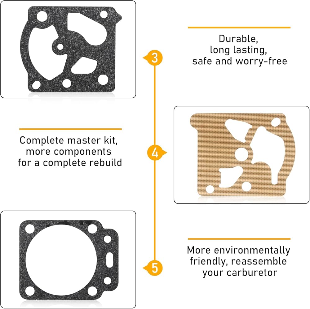 QAZAKY 5pc Carburatore A Membrana Guarnizione Rebuild Kit Di