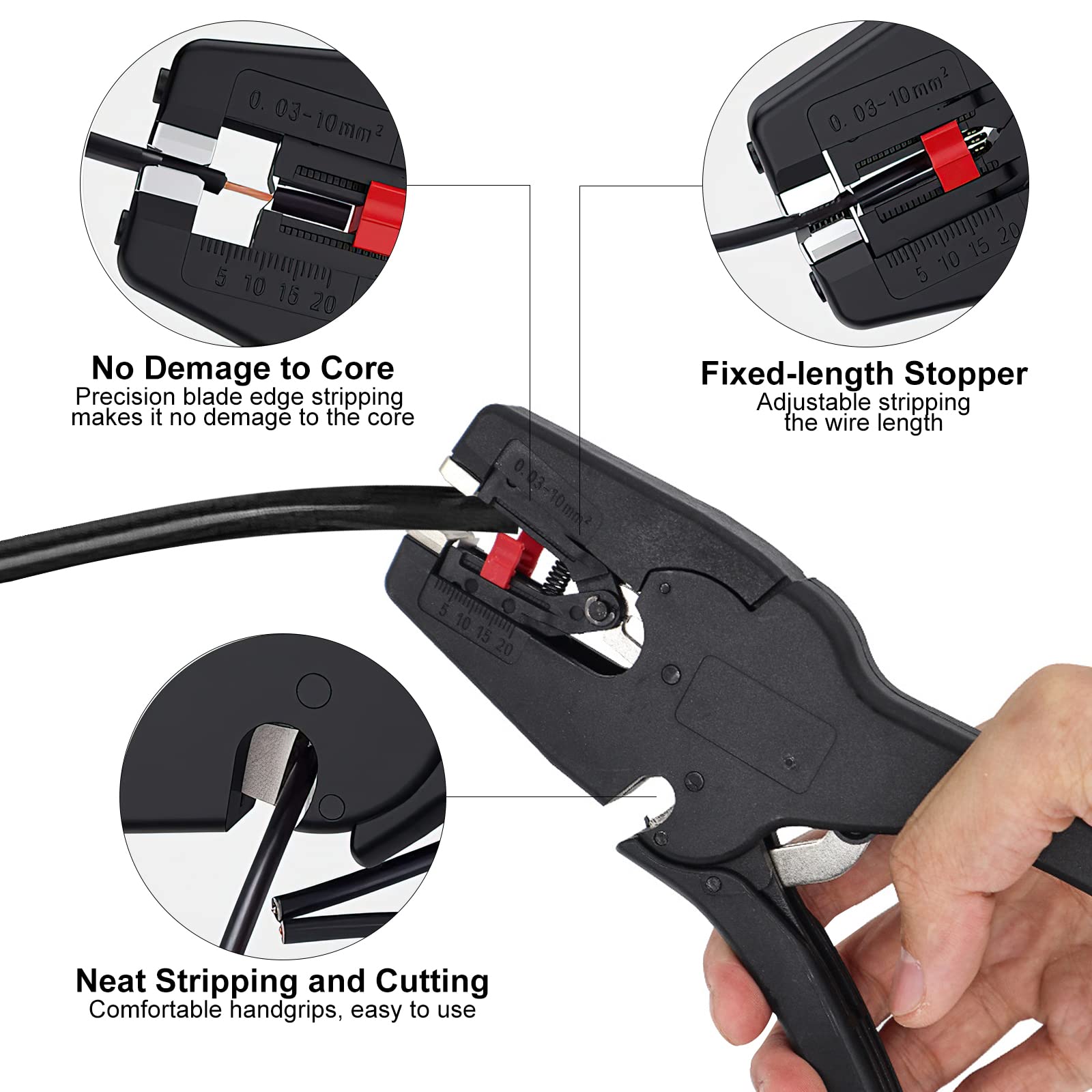 Design Regolabile: Questo strumento spela cavi 2 in 1 è dotato di pulsanti regolabili e di una scala di lunghezza per garantire la precisione della spellatura. Le lame affilate sono in grado di spellare in modo pulito lo strato esterno del cavo, senza danneggiare l'anima; il tagliafili consente di tagliare il filo in modo pulito e preciso. Le migliori offerte per Spelafili Elettricista 2 in 1 Pinza Spelafili Automatica Pinza Spelacavi sono su Confronta prezzi e caratteristiche di prodotti nuovi e usati Molti articoli con consegna gratis L'impugnatura ergonomica con presa comoda e design antiscivolo facilita la presa, la spellatura e il taglio dei cavi anche con una sola mano. Impugnatura Ergonomica: Le spelafili automatiche sono realizzate in acciaio e plastica di qualità, di ottima fattura, resistenti e robuste, per garantire una maggiore durata. È facile lavorare con cavi di comunicazione, cavi di rame rivestiti di stagno, cavi di alluminio e altri cavi. Il design del naso d'aquila consente di spellare i fili in spazi ristretti. Gamma di Dimensioni: Riceverete 1 pezzo di spelafili, la dimensione è 2.95x6.30inch/75x160mm, funzione di taglio e spelatura due in uno. È dotato di un tagliafili affilato incorporato che consente di tagliare in modo rapido e semplice i cavi da 0,08-2,0 mm². Questo spelafili 2 in 1 è adatto per spellare fili singoli (0,5-3,3 mm²), doppi (0,5-5,5 mm²) e piatti (0,5-3,5 mm²). Pinze Elettricista ICrimp HS-D2 Spelafili Automatico Autoregolabile 0,2~6,0 Mm² Con Impugnature ProTouch - Spelafili, Taglierina E Crimpatrice Multiutensile Per Spelafili, Tagliafili E Crimpatrice Per Terminali Pinza Spelafili