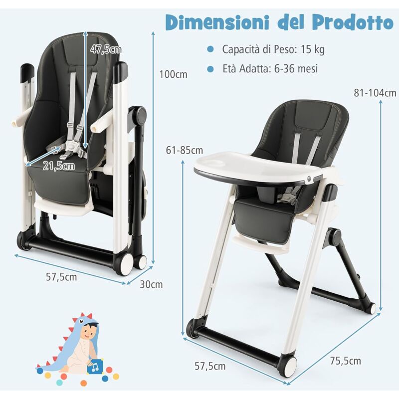 La cintura di sicurezza regolabili e la barriera anticaduta forniscono una protezione aggiuntiva per i piccoli. Il cuscino del seggiolone è imbottito di spugna, morbido e traspirante. COSTWAY Seggiolone Pappa per Bambini 6-36 Mesi Fino a 15kg, Seggiolone Convertibile 2 in 1 con Altezza Regolabile in 5 Posizioni, Vassoio Rimovibile e Lavabile, in Alluminio (Beige) ... [Dettagli Sicuri e Adatti ai Bambini]L'intero seggiolone è progettato ✅★Struttura Stabile e Sicura★ Il seggiolone è robusto grazie al telaio triangolare realizzato con tubi di alluminio di alta qualità. Il vassoio ha 2 livelli di regolazione, che permette di impostare la giusta distanza dal bambino. Inoltre, il vassoio può essere lavato direttamente in lavastoviglie. ✅★Vassoio Premium★ Realizzato in materiale PP di alta qualità, il vassoio senza BPA è resistente al calore. Può essere convertito per adattarsi alle diverse esigenze dei bambini in crescita. ✅★Seggiolone Regolabile★ Con una seduta regolabile in 5 altezze, puoi adattarlo alle dimensioni di tavoli diversi. ✅★Accompagna i Bambini in Crescita★ Questo seggiolone da pappa è progettato per bambini da 6 mesi a 3 anni con un carico massimo di 15 kg. Stokke Tripp Trapp LIFEZEAL Seggiolone Pappa Evolutivo Per Bambini 6-36Mesi, Altezza Regolabile, Schienale Reclinabile, Pioggiapiedie, Doppio Vassoio, Ruote, Cintura Di Seggiolone Pappa Portatile
