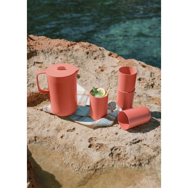 Set Da 7 Pezzi: Brocca Di Argilla 1,9 L + 6 Bicchieri Di Argilla Da 175 Ml, Colore Marrone Rossastro Smaltato, Teiera Da Portata, Tazze Da Cucina Mediterranea, Per Il Vino, Per