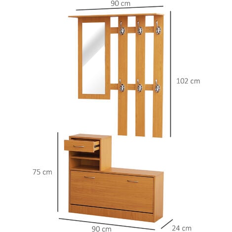 HOMCOM - Appendiabiti Da Terra A 6 Ganci In Truciolato E Acciaio Con Mobile Scarpiera Portaoggetti 92 5x28 2x182 Cm 837 385v00rb