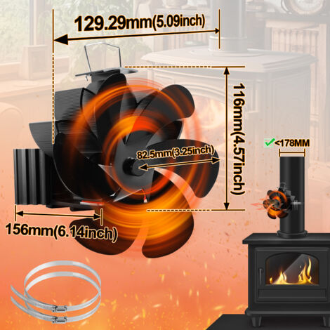 BYBULE Ventilatore A Legna A 6 Pale, Ventilatore Da Stufa Con