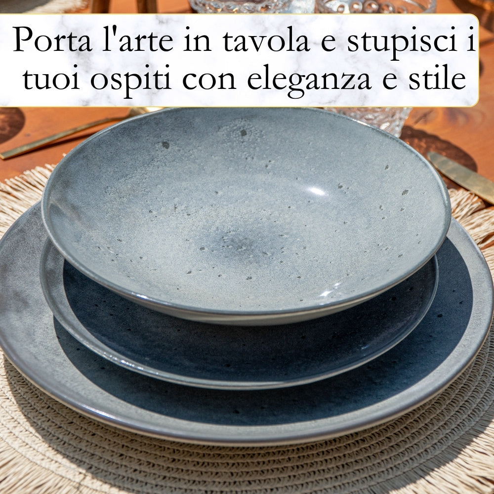 Servizio Piatti Da Cerimonia Detersivo Piatti Piatti Neri Moderni, Set Piatti 6 Persone In Ceramica - Elegante Servizio Piatti Manhattan, Adatti A Lavastoviglie E Microonde - Piatti Fondi Per Un'Esperienza Culinaria Unica - Pure Living Piatti Tognana Servizi Piatti Da Mangiare Linea Reactive Video del venditore Eleganza che Trasforma la Tavola - Lascia un'impressione indimenticabile con questo set piatti moderni da 18 pezzi dal design elegante Ogni piatto, con sfumature uniche e dettagli sofisticati, aggiunge un tocco di stile esclusivo, perfetto per cene speciali, occasioni eleganti o per arricchire la tua tavola quotidiana con un tocco di classe Bellezza, sostenibilità e sicurezza in un unico prodotto Facili da Pulire - Compatibili con microonde e lavastoviglie, questi piatti servizio da 6 ti permettono di riscaldare e servire con facilità, riducendo il tempo dedicato alla pulizia e rendendo ogni pasto un piacere senza pensieri Materiale Resistente - Realizzati in porcellana resistente ed atossica, questo servizio di piatti è la scelta perfetta per chi desidera prodotti sicuri per tutta la famiglia. Un set completo che ti permette di servire ogni pietanza con eleganza e praticità, perfetto per famiglie e ospiti