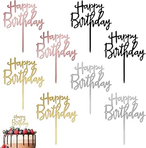 6 Pezzi Topper Torta Compleanno In Acrilico Argento Cartelli Happy