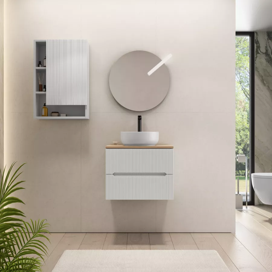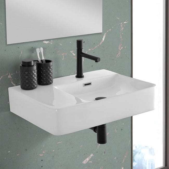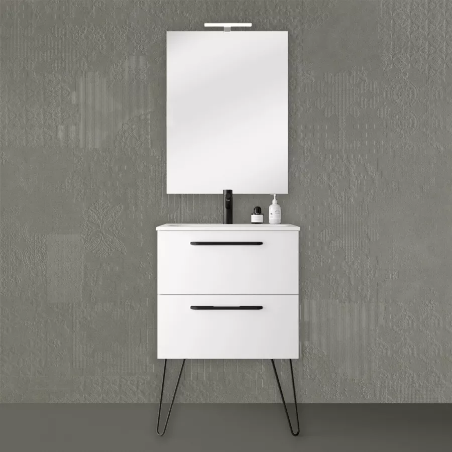 Set Mobile Bagno 60 Cm Laccato Bianco 3 Cassetti Con Lavabo In Ceramica
