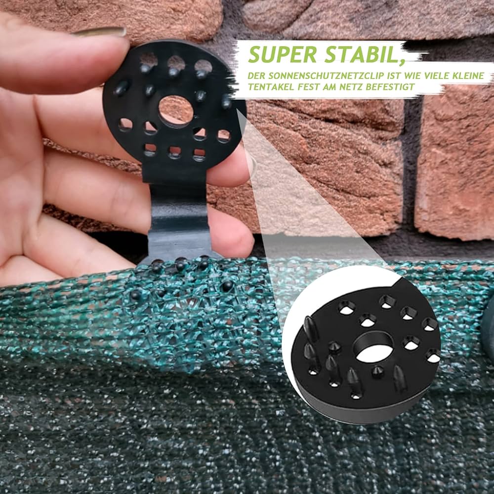 Praticità: le clip per panno per ombrellone sono realizzate in plastica, che può tenere bene l'ombrellone, evitando che venga spazzato via dal vento. Clip di plastica piccole e leggere, facili da riporre, non occupano spazio, soluzione semplice per insta Può essere utilizzato per fissare teli oscuranti, schermi, teloni, reti anti-uccelli, reti da giardino, reti agricole, ecc. Lista di imballaggio: Riceverai 60 clip speciali con occhielli, adatte per la maggior parte delle tonalità con rete, piccole e leggere per una facile conservazione. Materiale di alta qualità: La clip in tessuto per ombrello è realizzata in plastica, che ha una lunga durata, può tenere bene l'ombrello, evitare che venga spazzato via dal vento e impedire efficacemente ai raggi ultravioletti e agli uccelli di passare attraverso l'ombrello. Molteplici applicazioni: Le clip in plastica per la protezione del tessuto sono ampiamente utilizzate. Rete Anti Uccelli 60 Pezzi Clip In Plastica Per Panno Protettivo,Clips Di Rete Ombreggiante Basta premere saldamente la clip nella posizione corretta sul nastro. Siete a posto!