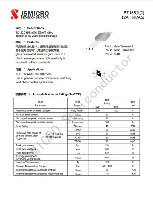 BT138-600E TRIAC Gate Trigger, 600V 12A, TO-220. A range of TRIACs (Triodes for Alternating Current is also known as Bidirectional Thyristors). They are used in AC switching and control applications with current ratings from under 1A to 40A rms. A TRIAC m 10PCS BT138 600E TO220 BT138 600 TO 220 BT138 138 600E New And Original 10 pezzi BT138-600E TO220 BT138-600 TO-220 BT138 138-600E