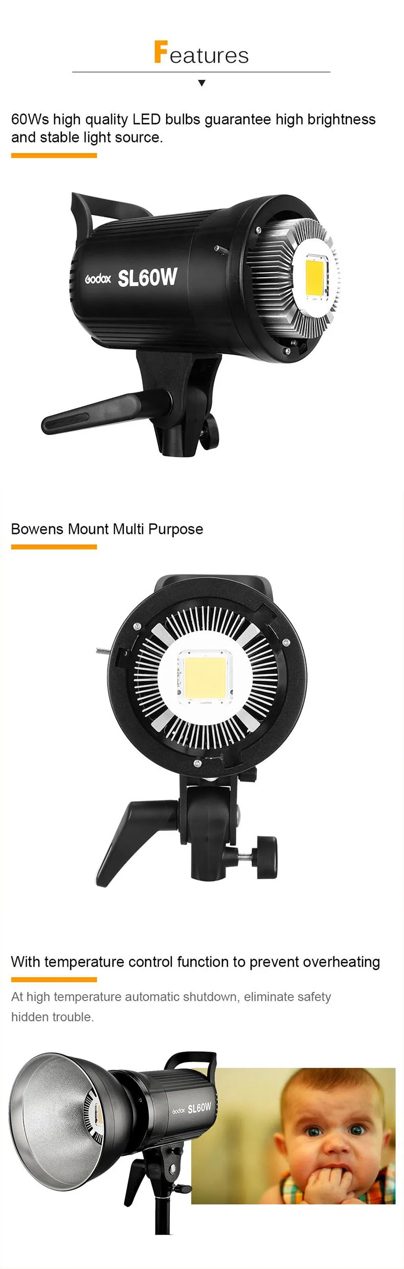 Sarà senza dubbio eseguire grande. 【Display LCD】Display LCD di grandi dimensioni, controllo preciso dell'uscita. Compact and lightweight metal body, strong and durable. Elevata resa di colore e temperatura di colore stabile che va da 5600 ± 300K, presentando gli oggetti in modo autentico. standard supporto Bowens]Il supporto standard Bowens può lavorare con diversi accessori per studio con il supporto Bowens. [60W LED bulbo]alta luminosità che va dal 10% -100%. Elevata resa di colore e temperatura di colore stabile che va da 5600 ± 300K, presentando gli oggetti in modo autentico Temperatura di colore: 5600 ± 300K 【Sicuro e affidabile】Eccellente dissipazione del calore e protezione intelligente della temperatura, per un funzionamento sicuro e affidabile. Instax Mini Cartucce Godox SL-60W 5600K 60W Di Alto Potere LED Luce Video Con Il Stream Deck Elenco dei pacchetti: 1 * Luce video 1 * Paralume riflettore 1 * Coperchio della lampada 1 * Cavo di alimentazione 1 * Manuale dell'utente (inglese) Non include il telecomando 【alta qualità】Corpo metallico compatto e leggero, robusto e durevole. 60W, alta luminosità luce che vanno dal 10% -100% LED. Standard Bowens, può lavorare con vari accessori studio con Bowens. alta resa cromatica e la temperatura di colore stabile che vanno con 5600 ± 300K, presentando gli oggetti autenticamente. Tensione: 100-240V AC Articolo Peso: 2,2 kg / 5.0lbs CRI 93+ TLCI 95+ Eccellente dissipazione del calore e protezione di controllo di temperatura intelligente, per un funzionamento sicuro e affidabile.