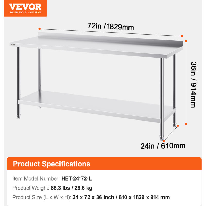 Tavolo In Acciaio Inox Professionale VEVOR Tavolo Da Lavoro In Acciaio Inox 61 X 30,5 X 95,5 Cm, Tavolo Per Preparazione Alimenti Con Ruote, Portata 227 Kg,3 Livelli Di Altezza Regolabili | Leroy Merlin Tavolo Lavoro