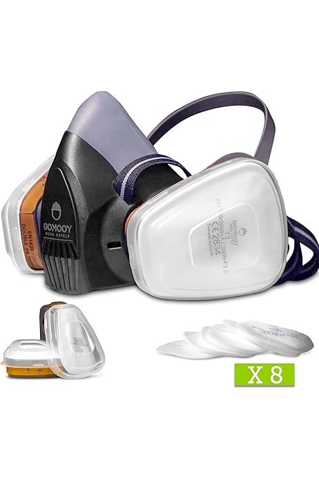 Garanzia di qualità certificata: abbiamo superato rigorosi test per garantire l'efficienza di filtrazione ≥ 99%. Soddisfa anche CE (UE) 2016/425 (standard UE). RANKSING Professional 6200 Reusable Respirator Mask with 1 Safety Goggles 10 Filters 2 Filter Cartridges for Paint Dust and Formaldehyde Grinding Polishing Spraying and Other Work Maschera Trattamenti Fitosanitari RANKSING Professional 6200 Reusable Respirator Mask, Half Face Gas Mask Maschere Per Verniciatura Il nostro sistema di filtrazione multistrato, accessori e materiali certificati garantiscono la vostra sicurezza. Soddisfazione garantita: siamo orgogliosi della nostra professionalità. Facile da montare, soddisfa rapidamente le vostre esigenze di utilizzo Occasioni applicabili: perfetto per pittori, stand di vernice, resina epossidica, scienza, lucidatura, lavorazione del legno, infield, outdoor, segatura, officina, sabbiatura, levigatura, costruzione, lavorazione, aerografo, stampi, elettricisti, graffiti, fai da te. Realizzato in materiale siliconico di alta qualità, resistente e facile da pulire.