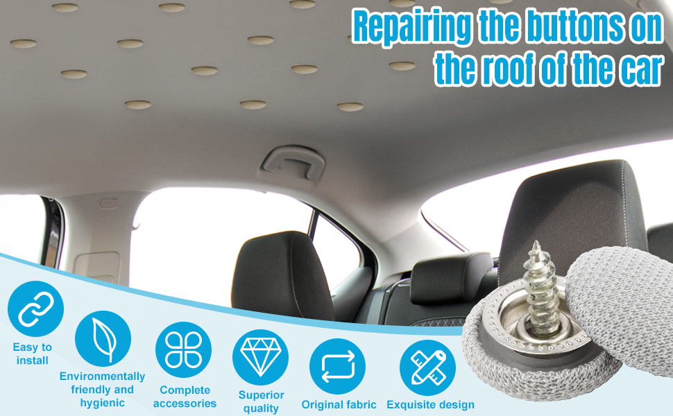Caratteristica: puntine cielo auto è realizzato in rete di alta qualità e rivestimento speciale per evitare che i rivetti si arrugginiscano. 【Multifunzionale】: Puntine cielo auto È utilizzato principalmente per decorare la parte superiore della vettura e fissare il tetto della vettura per rendere l'interno della vostra auto un aspetto spazioso e non danneggia l'originale car. Viti zincate e base zincata rendono la fibbia più stabile e non cadrà. 【Bello e pratico】: il colore è simile alla maggior parte dei tetti delle auto e può essere combinato con vari veicoli interiors. Le migliori offerte per YDHfdc 65 Pcs Kit Riparazione Cielo Auto Riparazione Rivetti Pulsante Puntine sono su Confronta prezzi e caratteristiche di prodotti nuovi e usati Molti articoli con consegna gratis Include tutti gli accessori utilizzati per riparare il rivestimento del tetto dell'auto senza attrezzi aggiuntivi. 【Facile da usare】: in primo luogo misurare la distanza con un metro a nastro, fissarlo al tetto della vettura con un perno, quindi fissare la base con viti per sostituire il perno, e fibbia il lid. Kit Riparazione Cielo Auto Zocipro 65Pcs , Riparazione Automobilistica Kit Cielo Auto Descrizione prodotto 1. Questo Kit Riparazione Cielo Auto può risparmiare il costo di riparare la vostra auto a home. It si consiglia di installare una distanza di 12-15 cm tra ciascuno. 60 * colore di posizionamento pin 1 * cacciavite 1 * Misura di nastro Ricordo caldo: 1. A causa delle differenze di luce e lo schermo, il colore del prodotto può essere diverso. 【Contenuto della confezione】: tra cui 65 pezzi di Rivetti Pulsante, 60 pezzi di perni colorati, 1 metro a nastro e 1 cacciavite. Leggermente diverso dall'immagine. 2. Dovuto la misura manuale, si prega di consentire una differenza di 0.5-2mm. 3. Se avete domande o domande sui prodotti che avete ricevuto, vi preghiamo di contattarci in tempo. Fissare il tetto della vettura per evitare agitazione e aumentare lo spazio in macchina. 【Materiali di alta qualità】: Puntine cielo auto Realizzato in tessuto a rete, l'interno è coperto con un rivestimento speciale, che non è facile da arrugginire.