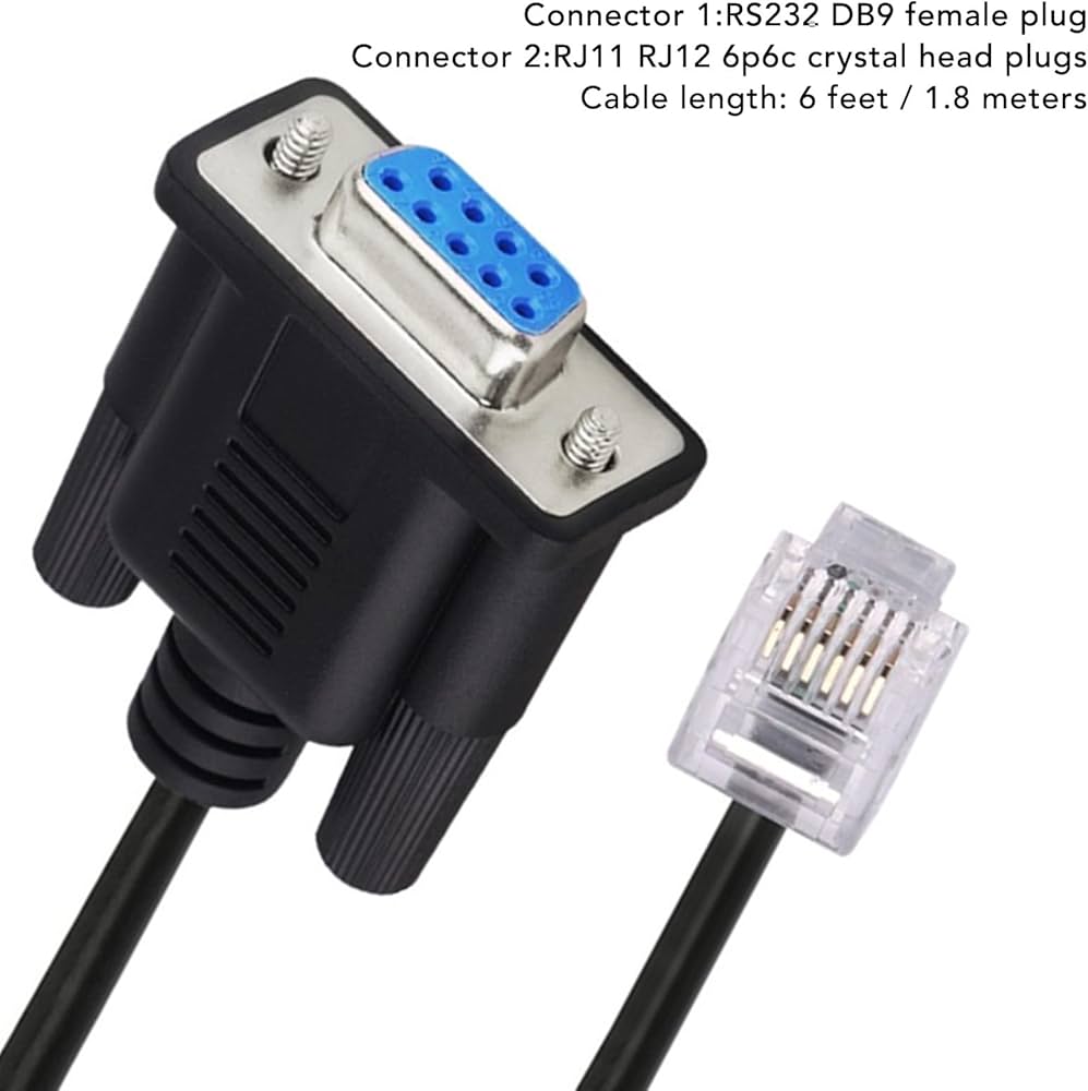 RS232 DB9Pin Female To RJ11 RJ12 6P6C LAN Network Serial Console Cable L 6ft 2pack
