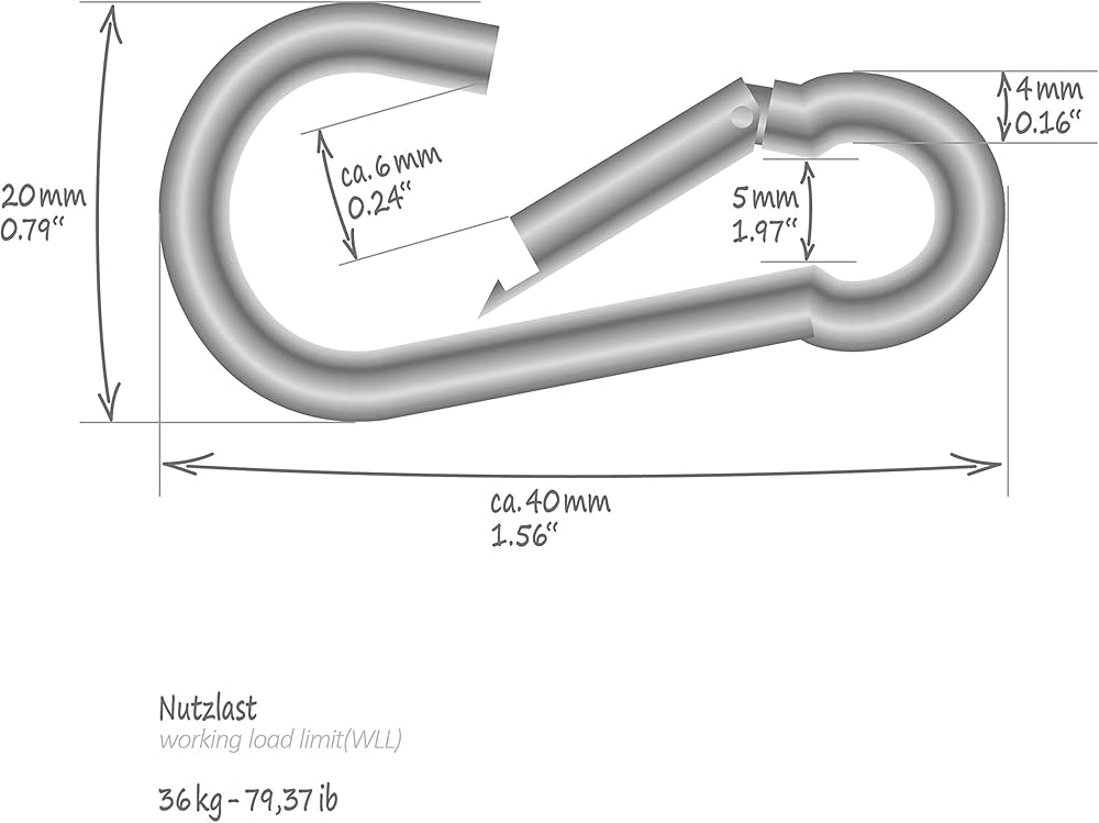 Ottimo per attività all'aperto, pesca, escursionismo o giardinaggio! DI ALTA QUALITÀ: I moschettoni sono realizzati in acciaio inossidabile 304 e quindi hanno un livello molto elevato di protezione dalla corrosione. Moschettone Portachiavi Per Com-four® 6X Moschettoni- Moschettone Premium In Anelli Portachiavi Moschettoni premium in acciaio inossidabile 304 resistente alle intemperie - con capacità di carico di 110 kg per portachiavi, casa, artigianato - 80x8mmStai cercando un modo per mantenere sotto controllo le tue chiavi?Allora abbiamo quello che fa per te! SICURI E FACILI: Con moschettoni in acciaio inossidabile, vele parasole, bandiere, griglie girevoli, borse o persino chiavi possono essere attaccate rapidamente e comodamente! CONSEGNA: 3x moschettoni // Dimensioni: circa 80 x 40 x 8 mm (lunghezza x larghezza x altezza) // capacità di carico: 110 kg // materiale: acciaio inossidabile 304 (antiruggine) COM-FOUR ® Moschettone - moschettone premium in acciaio inossidabile 304 resistente alle intemperie - gancio in acciaio per portachiavi, artigianato, casa, tempo libero Un ottimo moschettone che ti servirà bene in molte situazioni: che sia come portachiavi, per attaccare l'attrezzatura allo zaino, sul fondo o come chiusura rapida per corde da bucato, puoi fare affidamento su questo moschettone! MOLTE POSSIBILITÀ DI UTILIZZO: I moschettoni premium possono essere utilizzati in vari modi in giardino, in casa o nell'artigianato e anche in campeggio ma anche molto altro ancora! Ordina ora i nostri moschettoni in acciaio inossidabile di alta qualità!