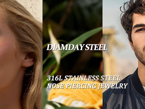 Diamday 6pcs Piercing Naso Anello 316L Acciaio Chirurgico Septum