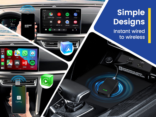 COMPATIBILITÀ UNIVERSALE: Adattatore 2 in 1 che supporta sia CarPlay wireless che Android Auto per una connessione senza fili al sistema di intrattenimento dell'auto Questo convertitore plug and play ti permette di trasformare il tuo sistema di infotainment cablato in una soluzione wireless all'avanguardia. L'adattatore wireless CarPlay può essere utilizzato per la maggior parte delle auto che supportano CarPlay con cavo e iPhone con iOS Configurazione senza sforzo e riconnessione automatica: Iniziate con un semplice processo di configurazione in tre fasi Car Play 2+32G]7 Carplay Android Auto Senza Fili Android 12 Autoradio Apple Carplay Wireless CONNESSIONE WIRELESS: Elimina la necessità di cavi permettendo di connettere il telefono al sistema dell'auto tramite Bluetooth e Wi-Fi PRESTAZIONI OTTIMIZZATE: Garantisce una connessione stabile e una trasmissione fluida dei dati tra smartphone e sistema dell'auto Goditi la navigazione, la musica e le chiamate senza il fastidio dei cavi. FUNZIONALITÀ INTEGRATE: Supporta la navigazione GPS, le chiamate in vivavoce, la riproduzione musicale e il controllo vocale Scopri la libertà di connessione senza fili con questo adattatore 2 in 1 per CarPlay e Android Auto.