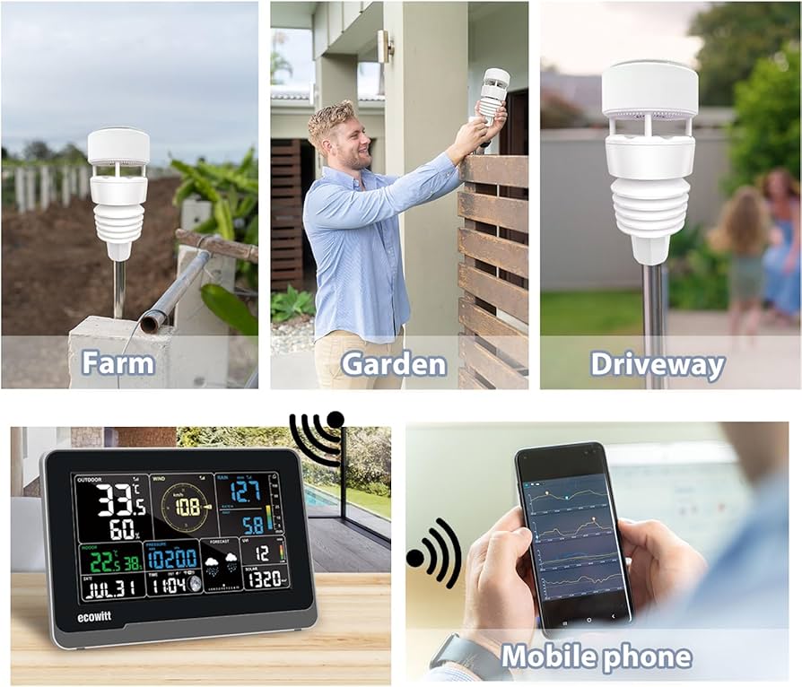 Stazione Meteo WS3901, 7 In 1 Stazione Meteo Da Giardino Unità Sensore