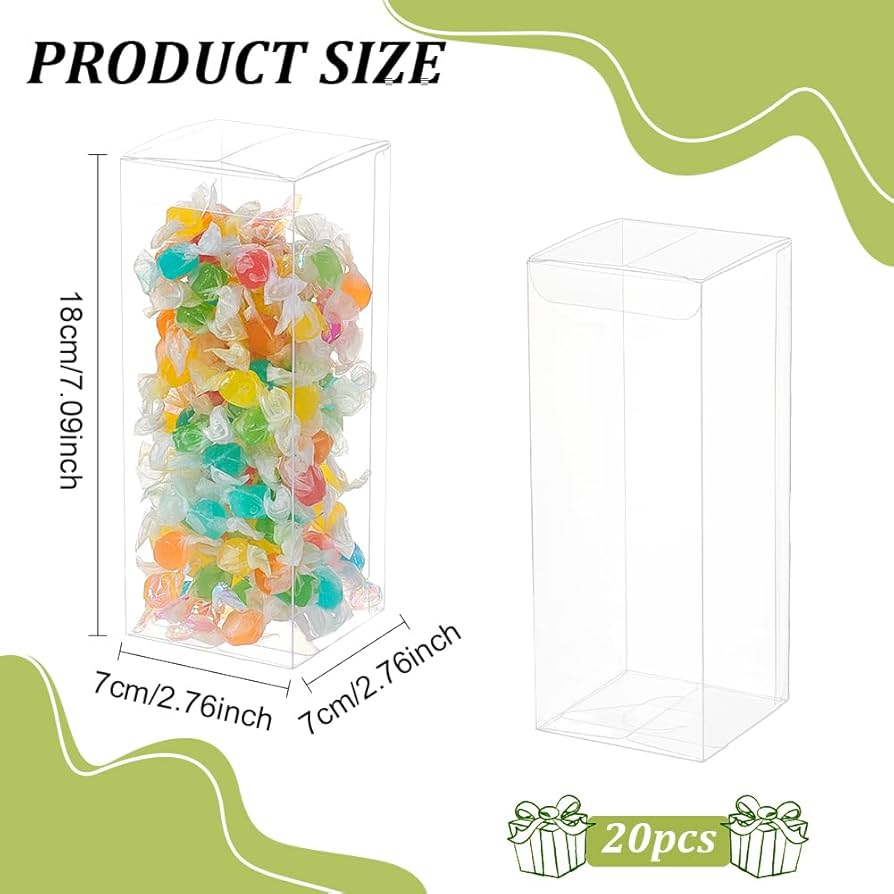 BENECREAT Set Di 10 Confezioni Regalo In PVC Trasparente, 7 X 7 X 21 Cm, Scatole Di Caramelle Rettangolari Trasparenti Con Bordi Bianchi E Cordoncino, Per Le Vacanze, Confezione Regalo