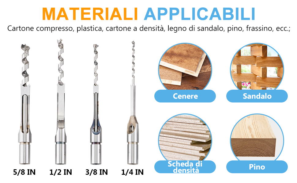 Potete acquistarle singolarmente o in pratici set di plastica resistente. L’alta qualità d’acciaio delle punte, perfettamente in centro e con un’affilatura di precisione, rende queste punte in grado di soddisfare veramente ogni vostra esigenza di lavorazione Combinata Per Legno Set Di Punte Per Mortasa ø 6-8-10-12-14-16 Rotazione Destra Holzmann Mortasatrice Per Legno