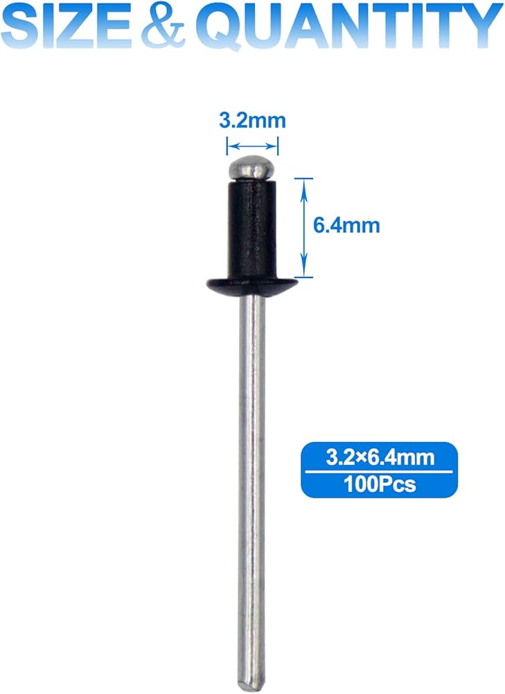 Confezione: 420 pezzi in 8 misure, confezionati in una robusta custodia in plastica trasparente, facile da riporre. Dimensioni: 60 pezzi da 3,2 x 6 mm, 60 pezzi da 3,2 x 8 mm, 50 pezzi da 3,2 x 10 mm, 50 pezzi da 3,2 x 12 mm, 50 pezzi da 4 x 6 mm, 50 pezzi da 4 x 8 mm, 50 pezzi da 4 x 10 mm, 50 pezzi da 4 x 12 mm. Rivetti ciechi di alta qualità: tutti sono realizzati in acciaio inossidabile 304, resistente, anticorrosione e impermeabile, non arrugginisce facilmente Rivetti In Alluminio 100 Pezzi Rivetti Ciechi In Alluminio 8 Misure M3.2 M4 Kit Assortito 420 Rivetti Targa Inoltre, la scatola può essere utilizzata per una scatola di immagazzinaggio. Utilizzato per usi domestici fai da te, affari, automobilistico, aviazione, canalizzazioni, ascensori, strumenti, mobili, ecc. Caratteristiche del prodotto: i rivetti ciechi hanno un mandrino che consente la formazione di sconvolgimenti sull'estremità cieca del rivetto e l'espansione del gambo del rivetto durante l'impostazione per unire le parti componenti di un assieme. Ampia applicazione: questi rivetti sono perfetti per unire tutti i tipi di piastre metalliche e tubi. Materiale: impugnatura in alluminio e mandrino in acciaio.
