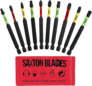 SabreCut 9 x SCRK9PH 32mm 89mm 152mm PH1 PH2 PH3 Set di punte per cacciavite a impatto magnetico Phillips Heavy Duty compatibile con Dewalt Milwaukee Bosch Makita e altro Ideale per l'uso continuo a coppia elevata, resistendo ai cambiamenti di carico grazie all'elasticità Punte per cacciavite a torsione e impatto resistenti, trattate termicamente, che garantiscono una maggiore durata e rotture ridotte Set Cacciaviti 9 X SabreCut SCRK9PZ 32 Mm 89 Mm 152 Mm PZ1 PZ2 PZ3 Jeu D Punte Per Cacciavite Sabrecut Punte per cacciavite PoziDriv (PZ1 PZ2 PZ3) di qualità professionale appositamente progettate per l'uso con avvitatori a percussione Punte per avvitatore a percussione magnetica SabreCut PZ1 PZ2 PZ3 da 9 pezzi da 32mm, 89mm e 152mm con custodia