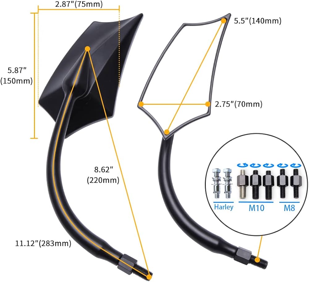 WTZMOTO Specchietti Rettangolari per Moto da 8mm/10mm, Rettangolari, Compatibile con Harley Davidson, Honda, Ruckus, Kawasaki, Yamaha, Suzuki. Dotato di 2 Bulloni Harley Neri(Nero #2 Harley Davidson Sportster 1200 Specchietti Laterali Retrovisori Moto 8mm 10mm Per Harley Honda Yamaha Kawasaki Street Sports Bike Chopper Cruiser Universale Specchietti Retrovisori Moto Specchietti Per Moto Rettangolari Wtzmoto Da 8Mm/10Mm, Rettangolari, Dotati Di 2 Bulloni Harley Neri, Compatibili Con Harley Davidson, Honda, Ruckus, Kawasaki, Yamaha, Suzuki.?Nero #2?
